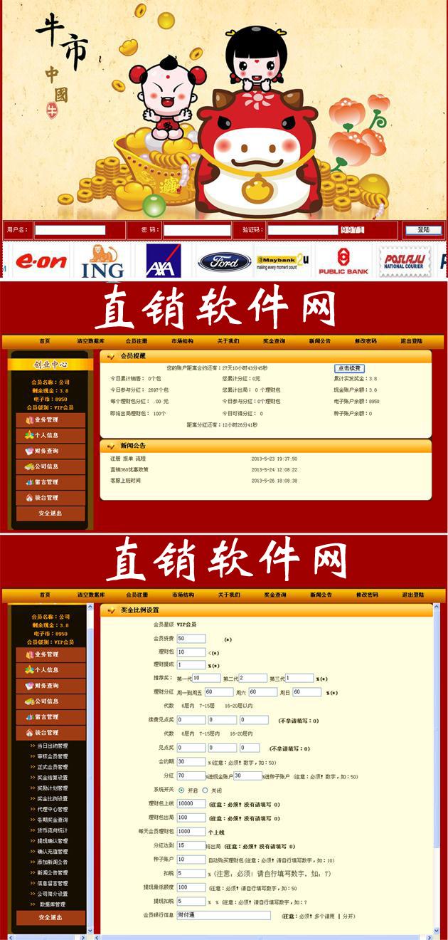 本套直销软件采用:ASP+ACCESS开发,是一套全球双轨一条线公排理财直销软件,同时带有理财包,后台可以控制所有的奖金比例,具体玩法大家看我们的制度说明吧。